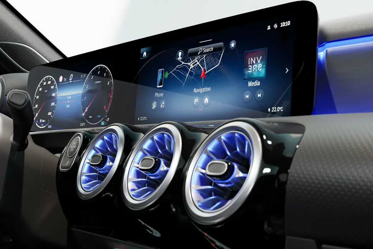 Друге покоління інноваційної розважальної системи MBUX робить інтер’єр A-Class ще більш цифровим. Керуйте функціями на стандартному 10,25-дюймовому широкоформатному мультимедійному дисплеї з високою роздільною здатністю – керування зрозуміле й зручне. У поєднанні зі збільшеною комбінацією приладів утворюється єдина передня широкоформатна панель.